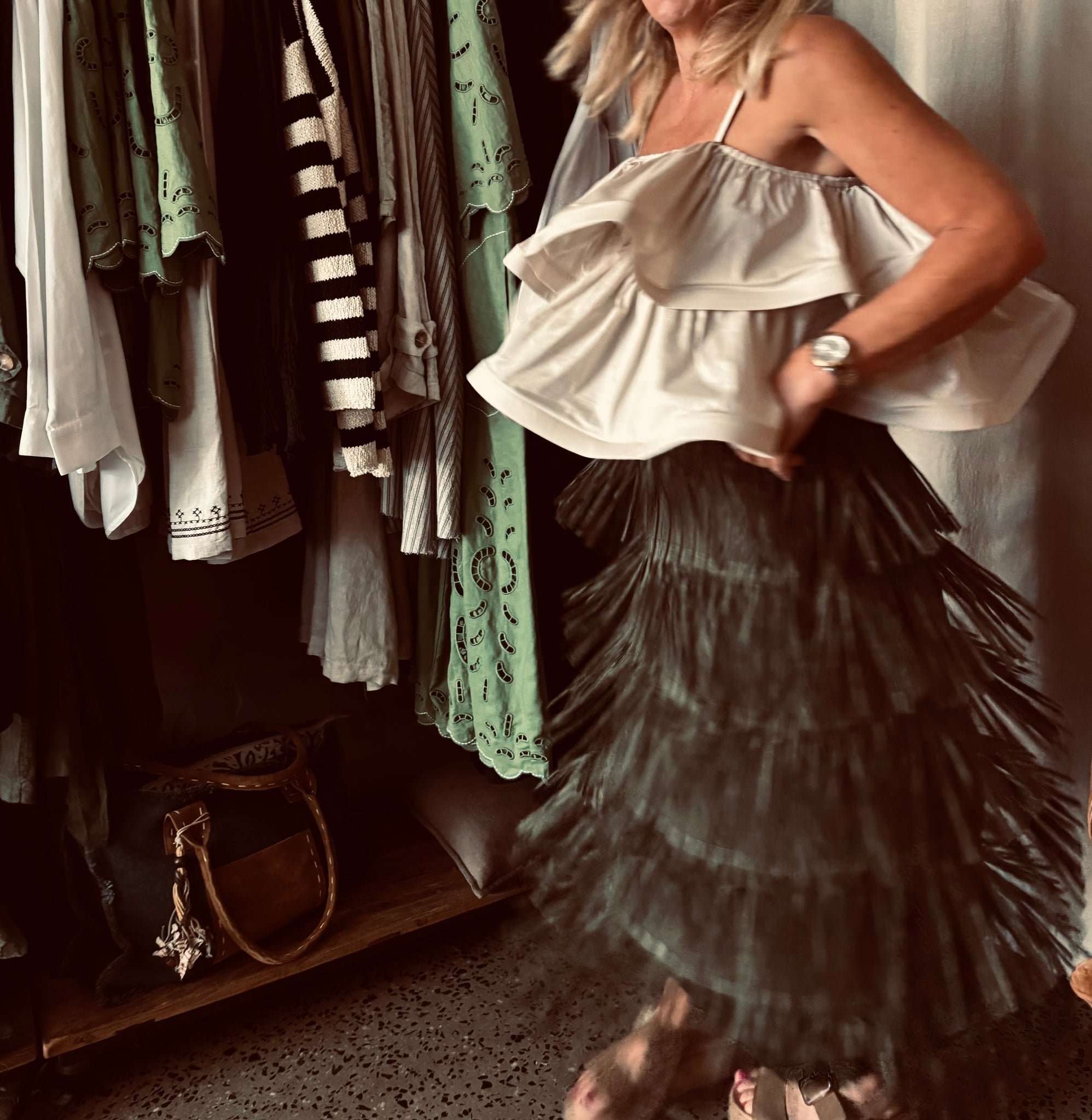 URBAN LUXURY: FRINGE AFFAIR SKIRT - KHAKI
