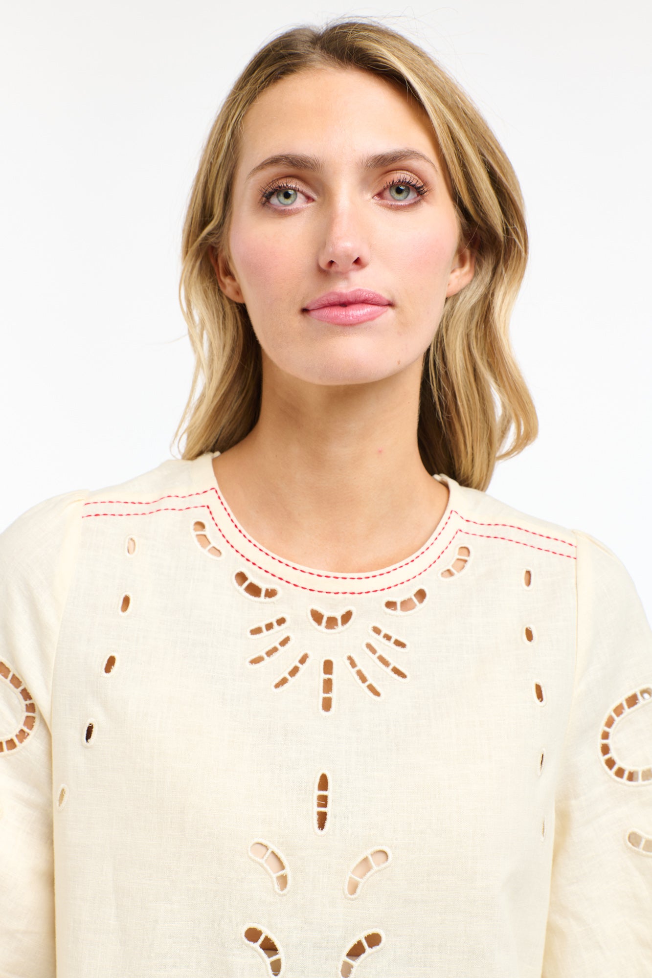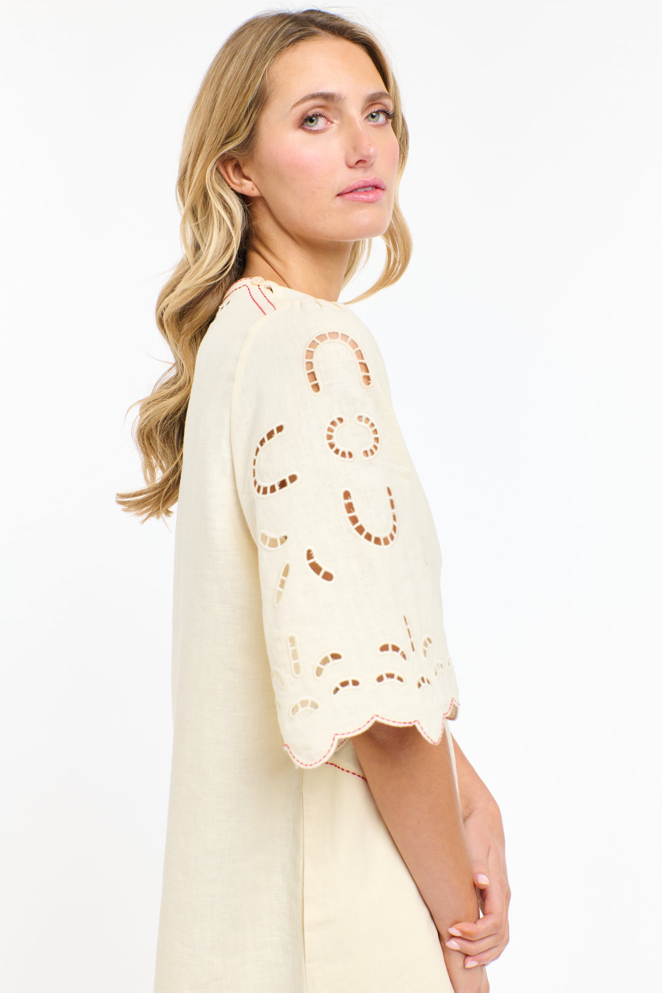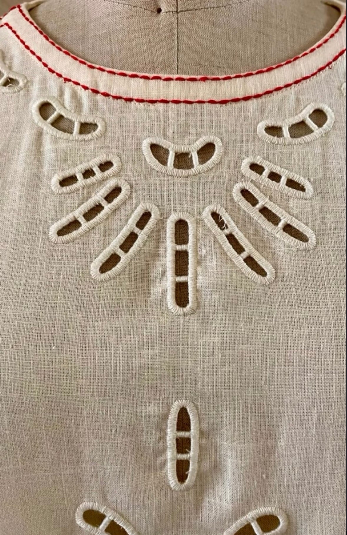 Cutwork embroidery detail front and back