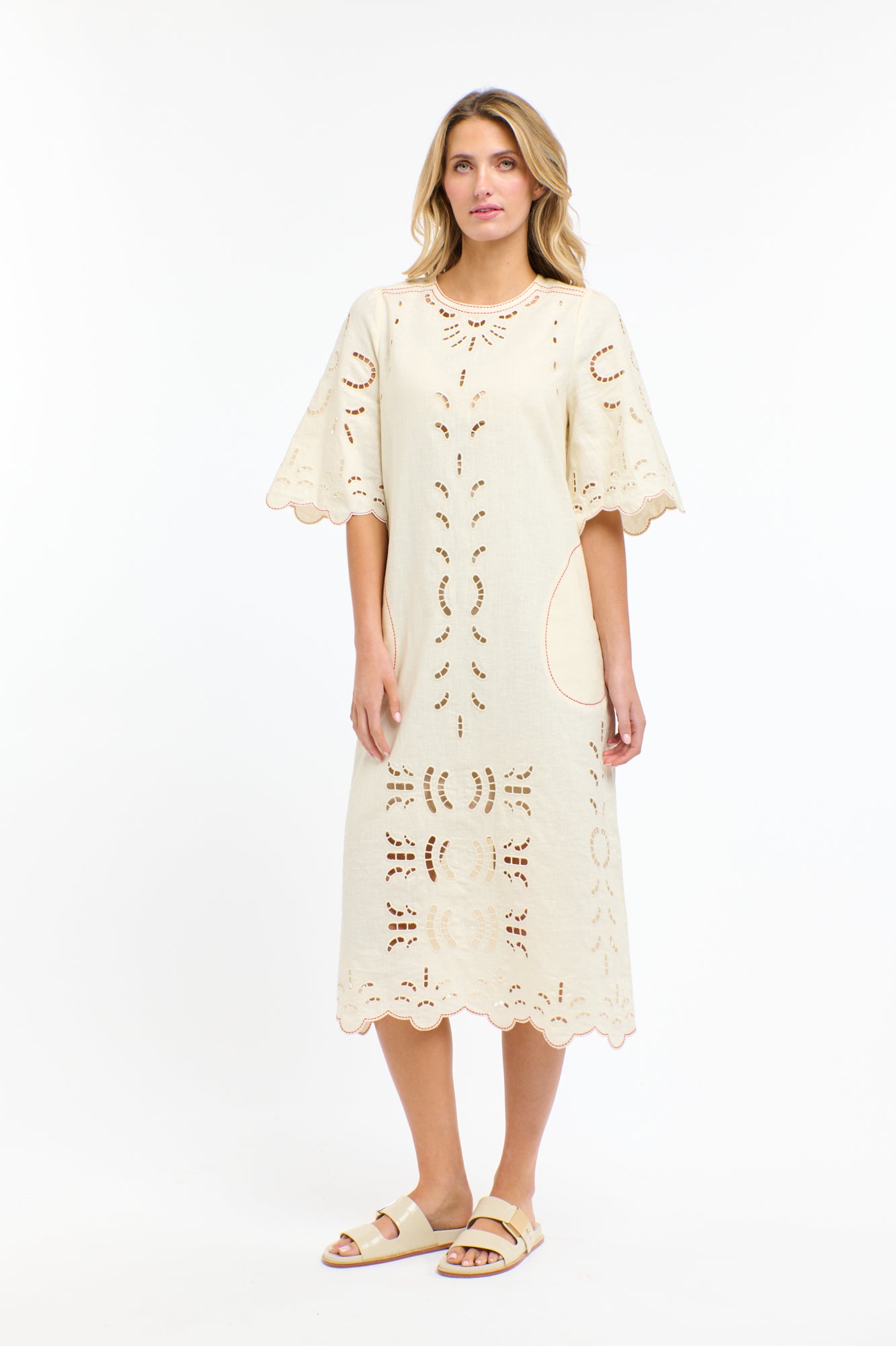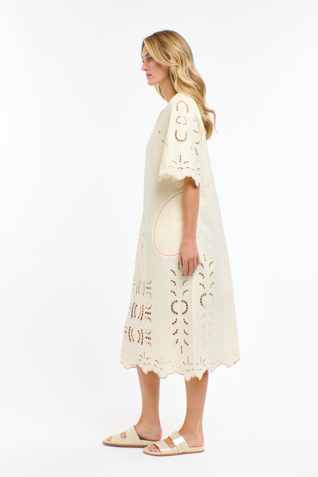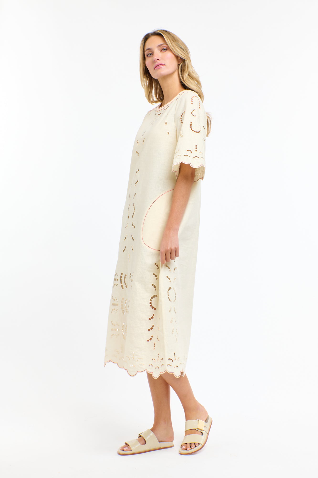 Cutwork embroidery detail front and back