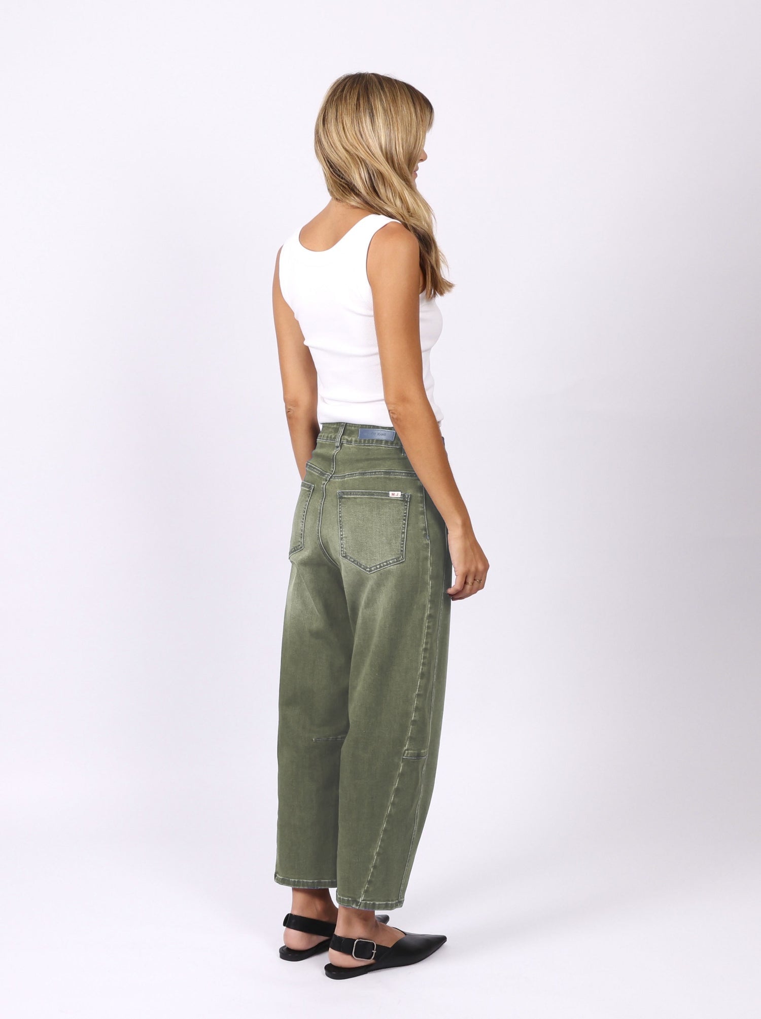 Characteristics of Toni Barrel-Leg Jeans include a fitted waist, flared-out shape around the mid-leg, and tapered silhouette at the bottom, which exudes the look of, well, a barrel. It's the vibe of a cowboy ready for a showdown in the Wild, Wild West!!!