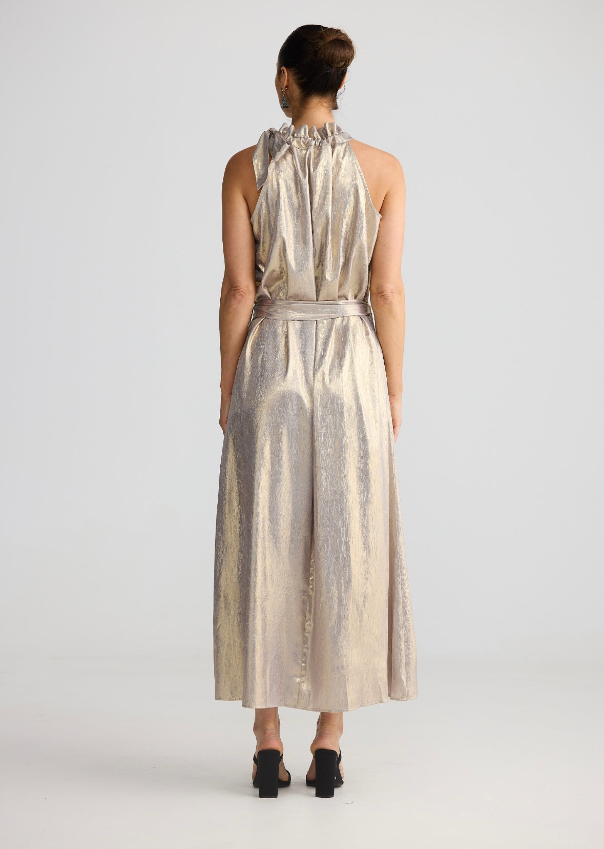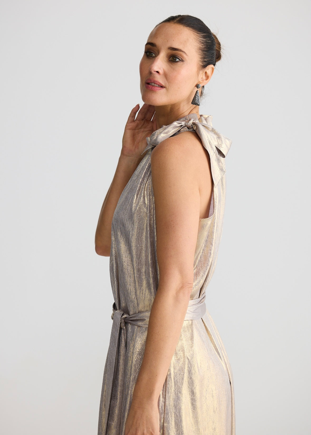 High neckline with tie detail