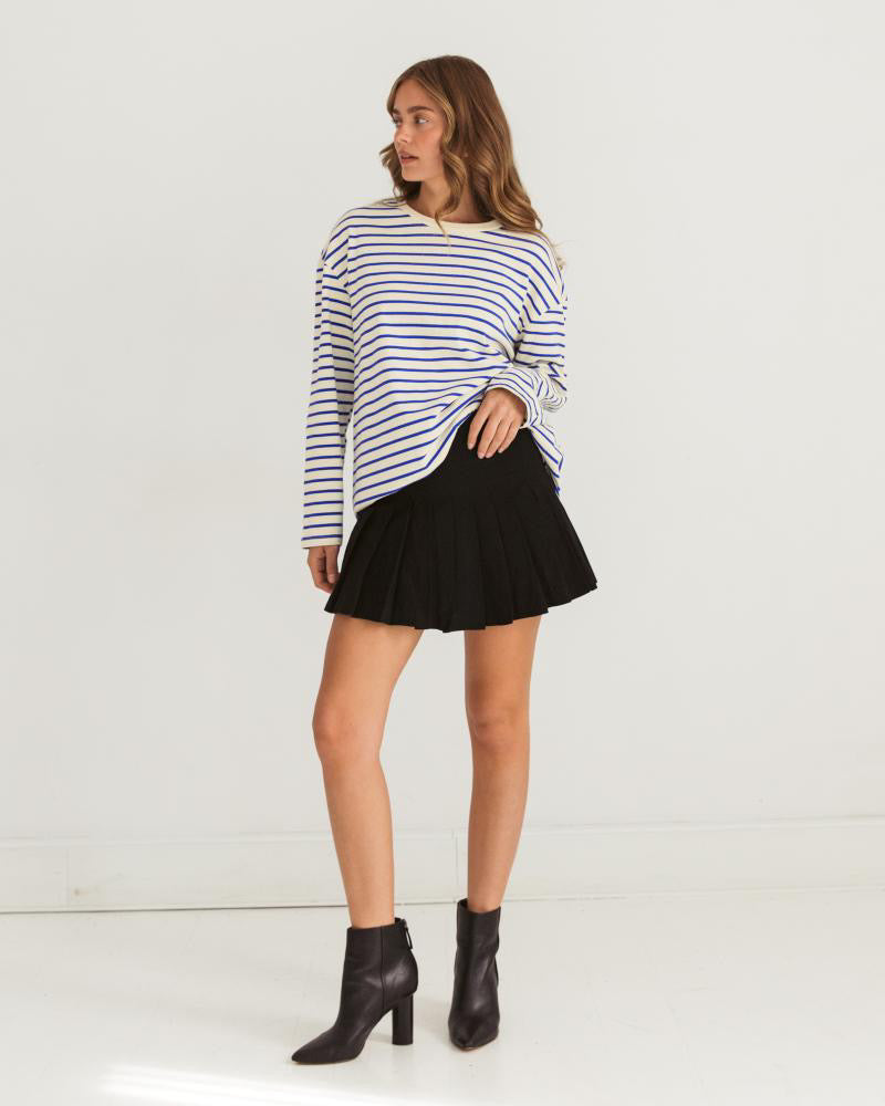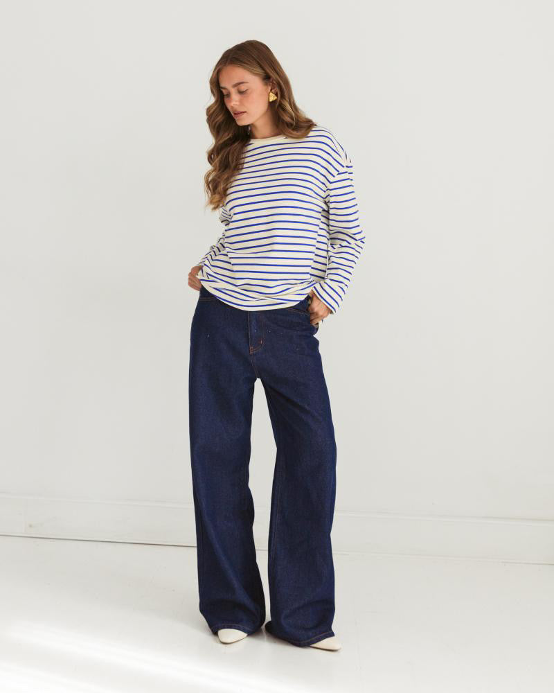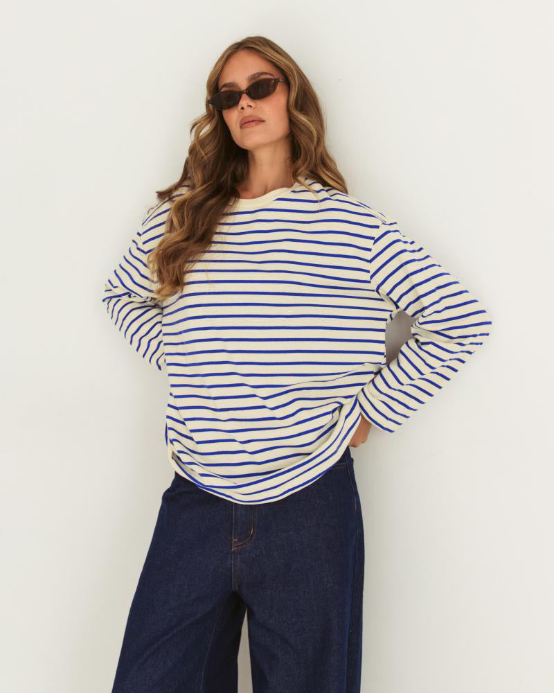 Cote D’Azur feel with our Antibes long sleeve in blue stripe pairs a classic round neckline with a relaxed fit and all-over stripes
