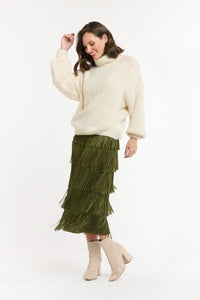 URBAN LUXURY: FRINGE AFFAIR SKIRT - KHAKI